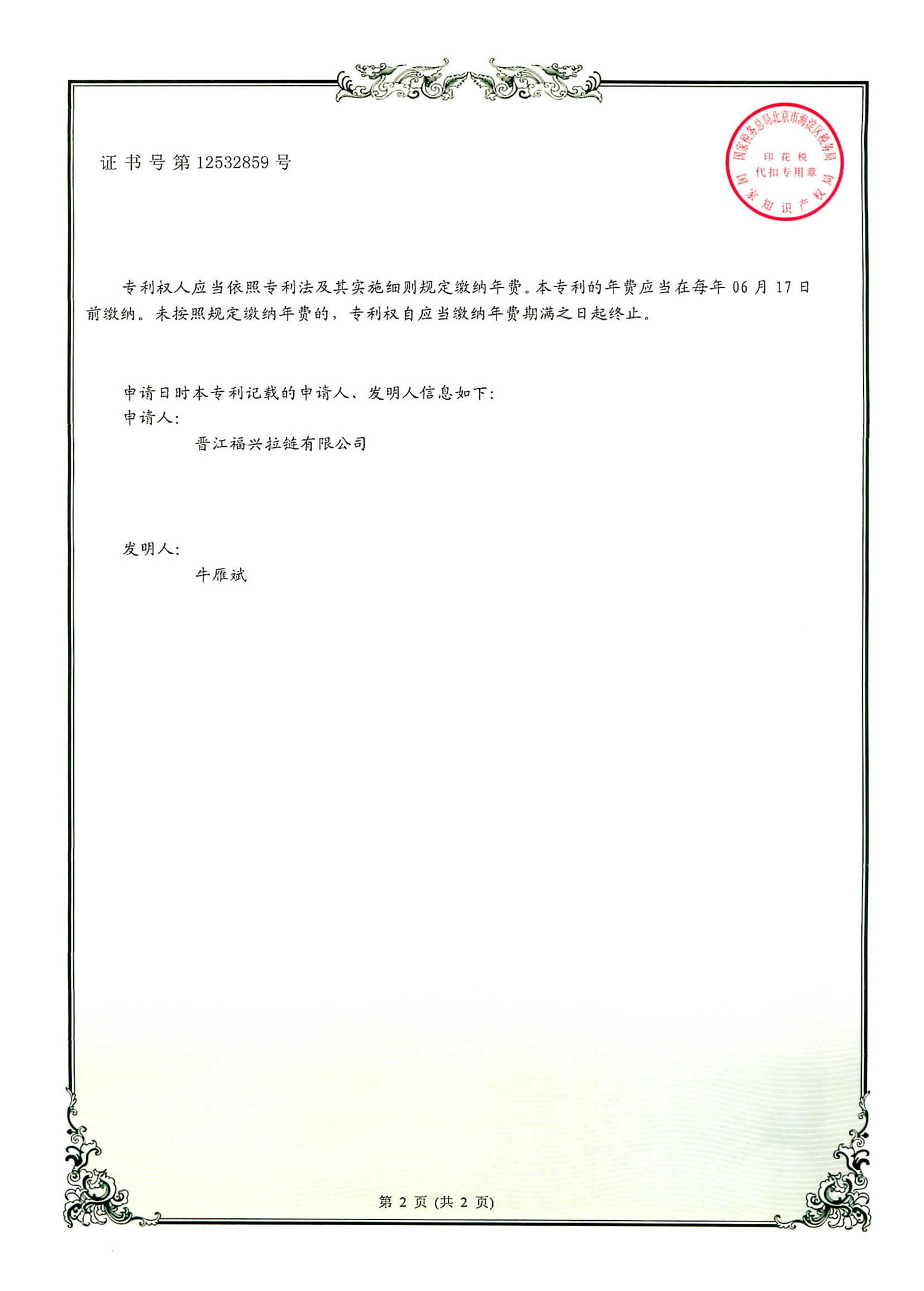 实用新型发明专利(第12532859号)